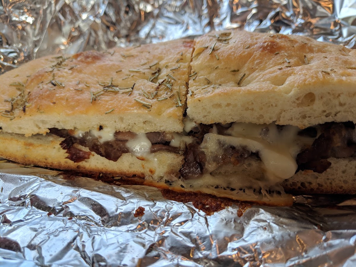 Smoked Turkey & Fresh Mozzarella with Plum Tomatoes and Sliced Onions on Focaccia